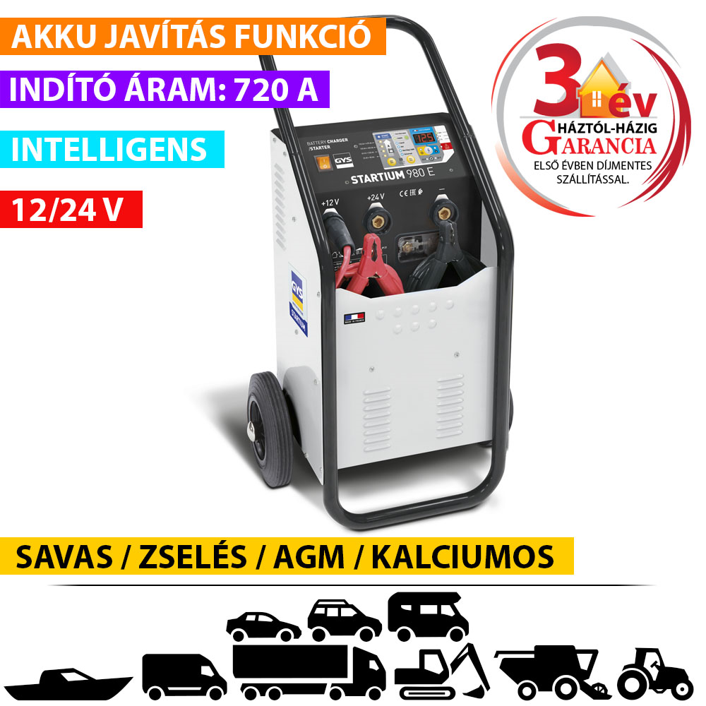A STARTIUM 980E egy automata töltő-indító, amelyet AGM / Zselé (Stop / Start), savas akkumulátorok töltésére és indítására alakítottak ki, hogy a mai korszerű járműveknél is megállja a helyét.